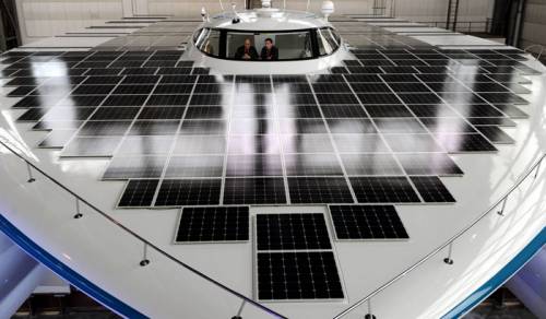 Il PlanetSolar è un catamarano che sta compiendo il giro del mondo utilizzando solo l’energia rinnovabile che ottiene dagli oltre 500 metri quadri di pannelli solari montati sullo scafo.