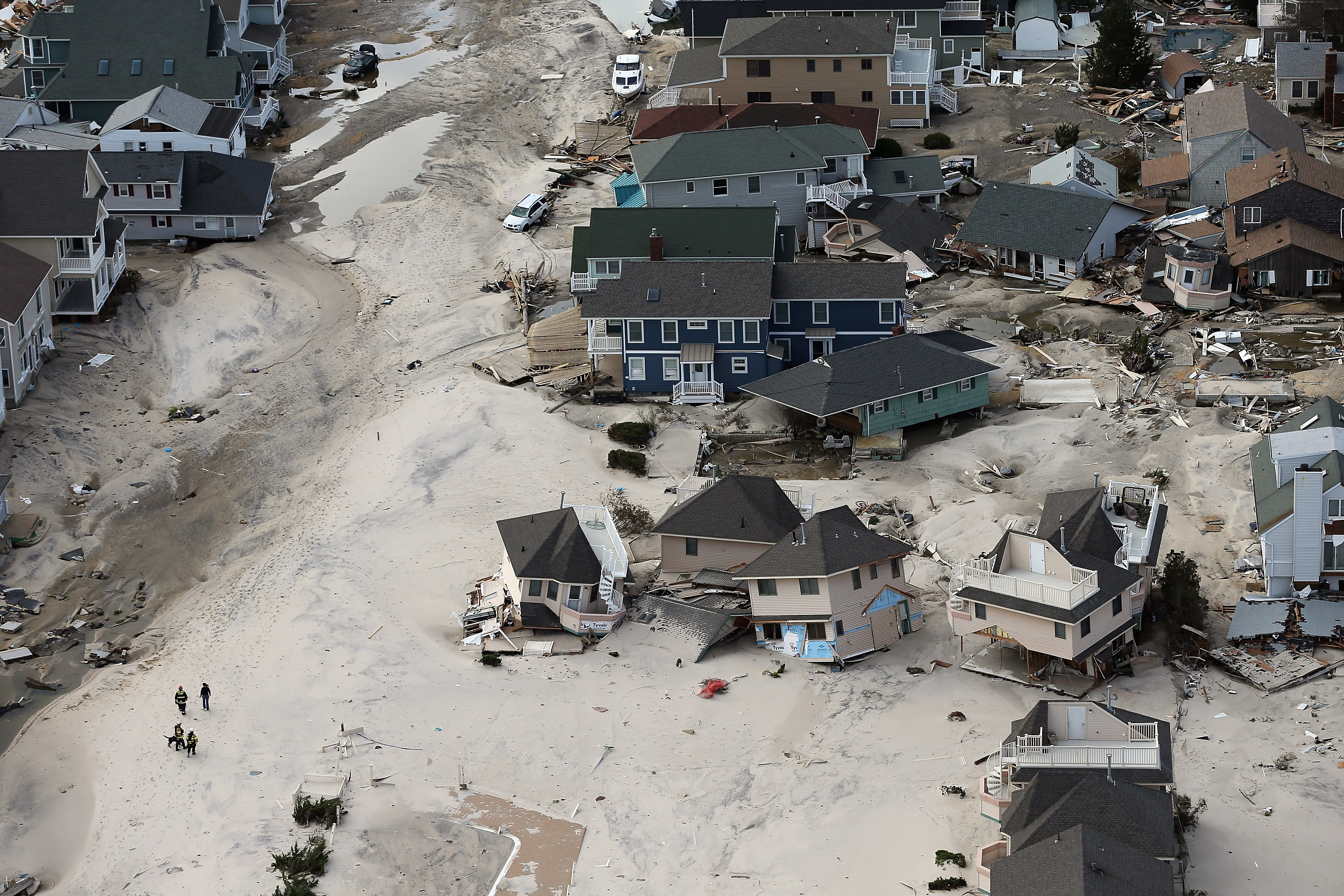 Il New Jersey rimane una delle zone che ha subìto i danni più gravi, l’acqua è ancora troppo alta e alcune zone sono addirittura irraggiungibili. A Hoboken ci sono ben quarantamila persone senza luce nè riscaldamento, che non possono evacuare, le squadre di soccorso hanno portato loro il cibo in gommone. Il blackout ha portato anche un altro problema, quello degli sciacalli, che al buio possono muoversi tranquillamente, approfittando di una situazione di immenso disagio.