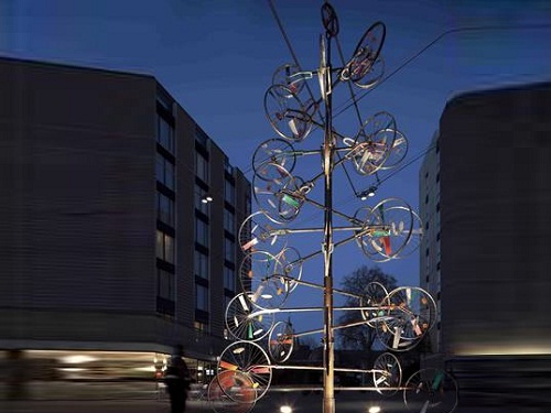 1. L’albero di natale fatto con vecchie ruote di biciclette, recuperate da vecchi o anche vecchissimi mezzi. Quest’albero è stato realizzato a Londra con 35 ruote, recuperate dall’associazione locale Re-Cycle