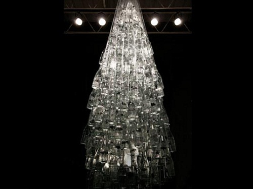 2. L’albero di natale, a Montreal fatto di bottiglie “upcycled”, ovvero riutilizzate a scopo creativo per creare qualcosa di nuovo. In questo caso, uno spettacolare albero di natale dai riflessi di ghiaccio, che pende dal soffitto, con una luce in mezzo.