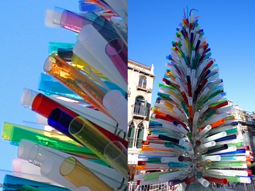 4. L’albero di vetro di murano, installato alcuni anni fa a Venezia. Mille tubi di vetro di Murano colorato per un’opera d’arte natalizia, più che un semplice albero di Natale.