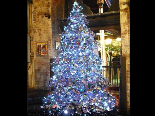 5. L’albero di Natale costruito con CD e nastri di cassetta riciclati. Un albero che è tutto un brillare, grazie alle superfici riflettenti di cui è composto, realizzato a New York dall’artista Tom Deininger.