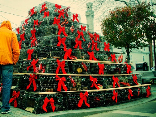 6. L’albero di Natale fatto di gabbie d’aragosta. Ebbene sì, avete letto bene: una piramide costruita con vecchie gabbie d’allevamento prese in prestito.