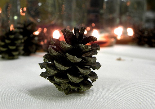Con dei sottili rami di pino, piuttosto flessibili, si possono realizzare ogni genere di festoni. Spesso non serve nient’altro che un ramo, lungo quanto si vuole, o dei piccoli rametti legati assieme. Si può decorare una scala a chiocciola legando con un fiocco rosso dei festoni di pino, oppure apporli sopra la porta d’ingresso della propria abitazione, sul davanzale delle finestre o anche sugli scaffali dentro casa. Le pigne sono inoltre tra gli elementi decorativi naturali più classici del Natale: si possono appendere all’albero, si possono dislocare in giro per casa, sulla tavola imbandita, sui festoni di pino e le ghirlande, sia al naturale che con abbinati fiocchetti colorati fatti con materiale di recupero. Anche le ghirlanda si possono realizzare in tutta facilità: basta piegare i rami in forma circolare e quindi legarli con un fiocco oppure recuperare piccole stecche di legno o di ferro, o ancora, in maniera semplicissima, ritagliare un sottile cerchio di cartone su cui fissare il materiale naturale. Le ghirlande possono essere realizzate con i rami di pino, ma non solo, sta tutto alla fantasia e alle preferenze di chi realizza le decorazioni di Natale: anche l’alloro e l’ulivo possono andar bene. Non basta altro che aggiungere un fiocco rosso (anche un laccio) o giallo, dorato, bianco, e volendo altro materiale recuperato in casa, come per esempio una campanella. Altra idea molto decorativa è quella di aggiungere all’albero di Natale o alle proprie ghirlande della frutta, va bene praticamente qualunque cosa si abbia in casa. Inutile dire che non andrebbe sprecata, ma poi staccata e mangiata regolarmente!