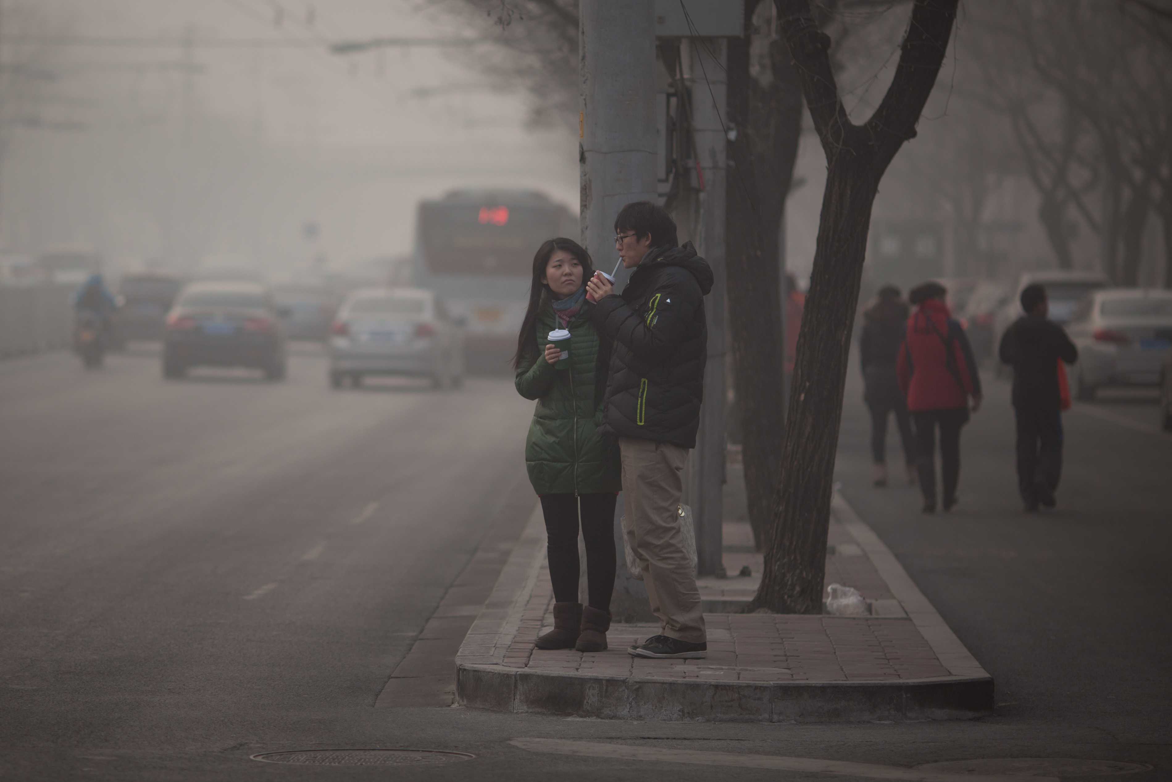 Lo smog ha oscurato perfino il sole, nella città grigia la gente si muove indossando le mascherine, ma le autorità municipali hanno invitato la popolazione a rimanere dentro casa. Tra l’altro si è creata una coltre grigia che ha ricoperto l’intera città, così fitta da rendere scarsa la visibilità e creando problemi anche al traffico.